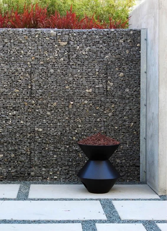 A gabion is a wire mesh container filled with rock, brick, concrete, or other inorganic materials. Originally derived from the Italian word gabbione, meaning “big cage,” gabions have been used for centuries in construction and civil engineering—and now bring structure and beauty to modern land.