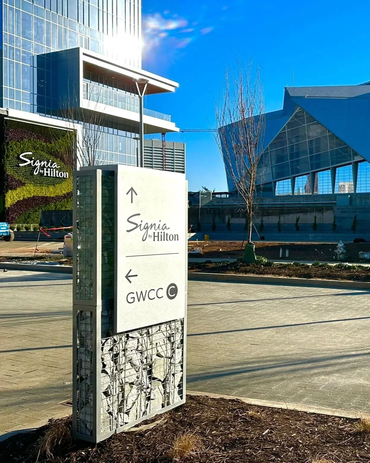 We build and install the gabions and then signage is added by any professional sign company you choose to work with.