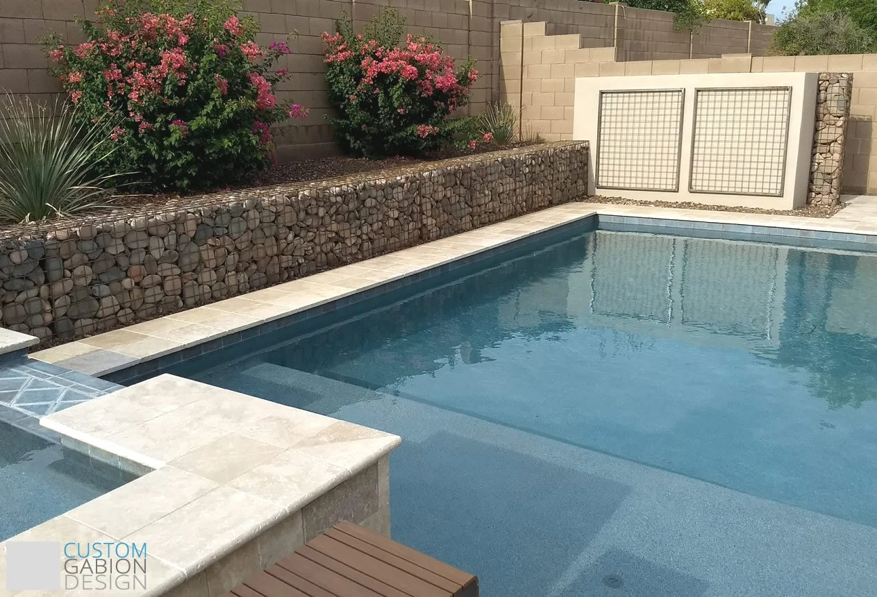 Privacy screens, noise-reduction walls, gabion arches, gabion stairs, pool pump screens, slope retention, wash retention and more are all possible with gabions.