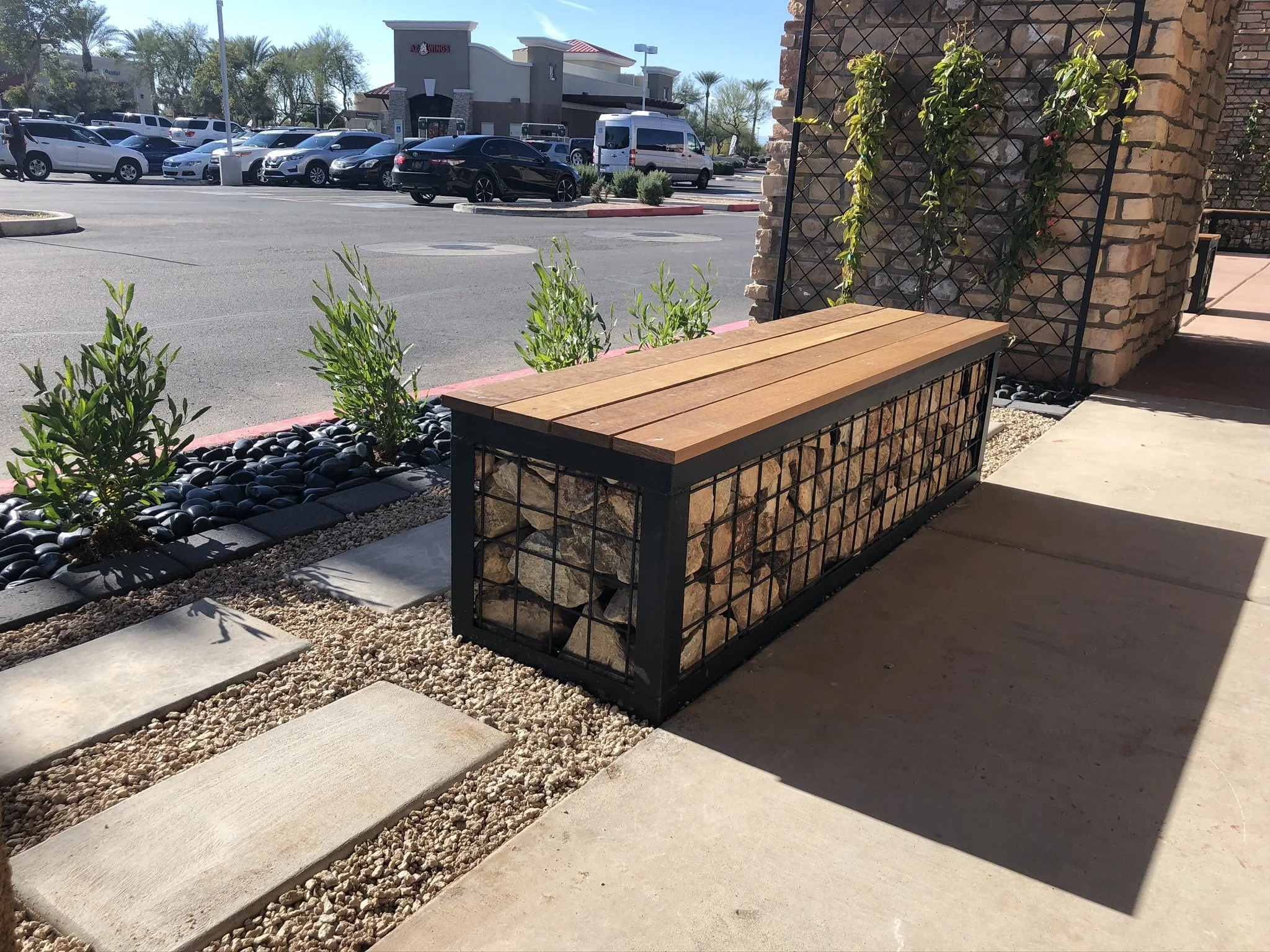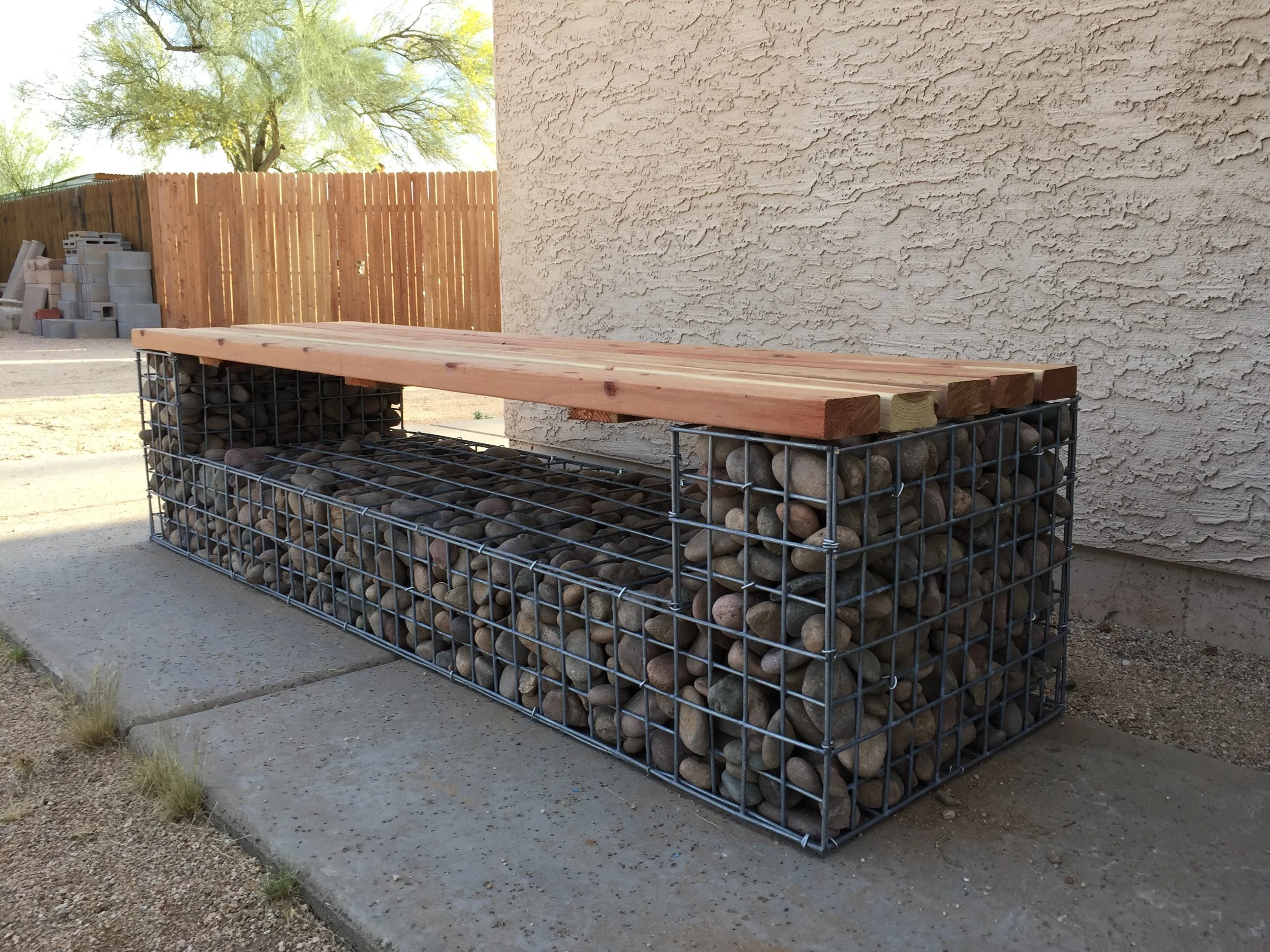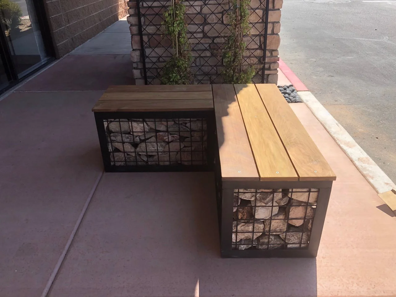 The only thing that will survive in Southwest Summers.Other outdoor furniture that is blasted by southwest sun lasts for a year or 2. If you want a permanent, unique and custom solution, choose gabions for your outdoor furniture.