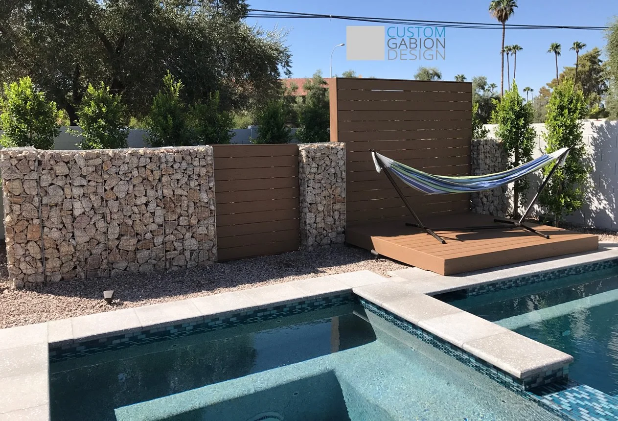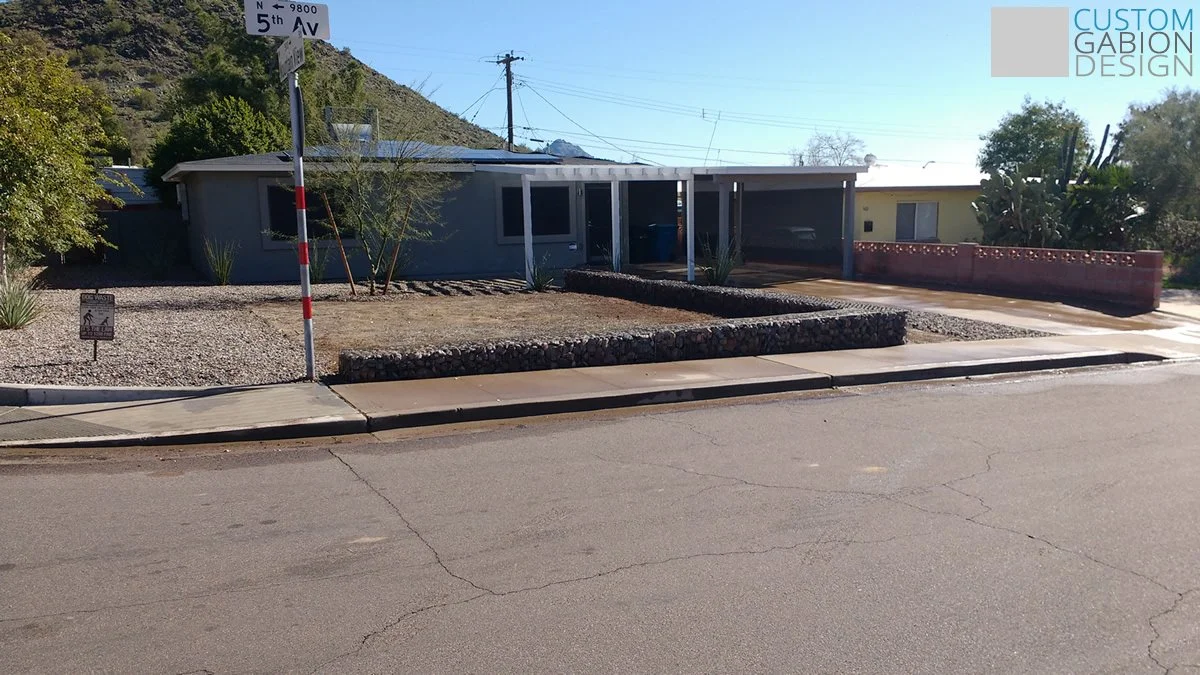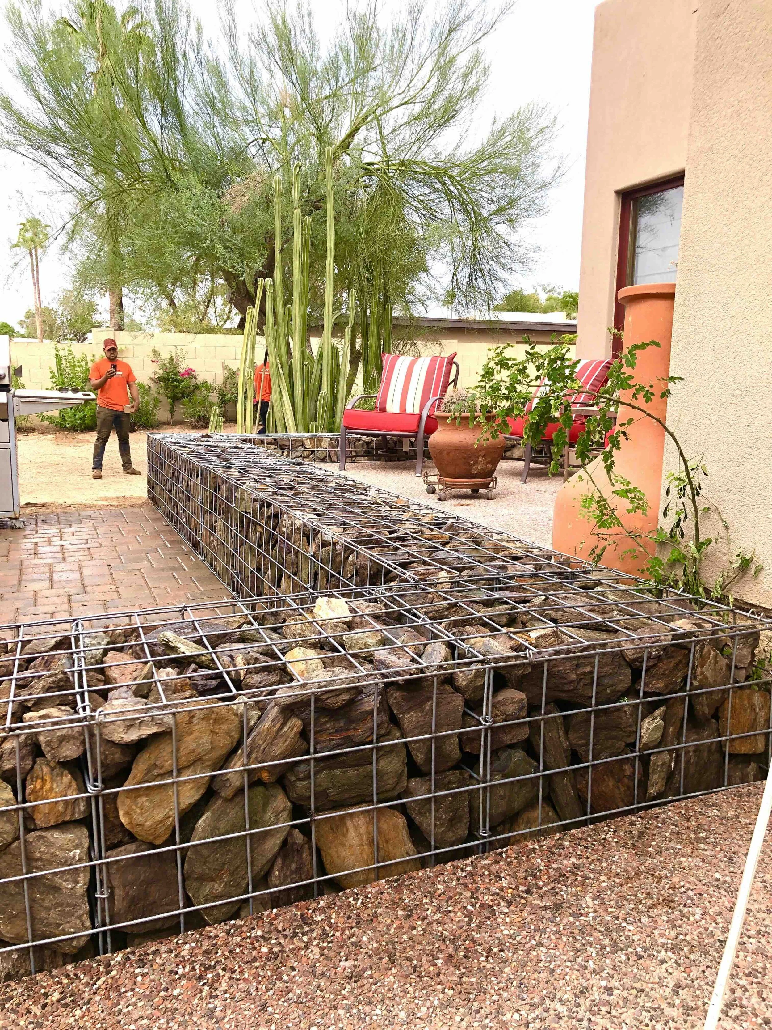 Beautiful and unique.Using gabions in a landscape gives you lots of shape, stype and color options. They are also super functional and maintenance free.