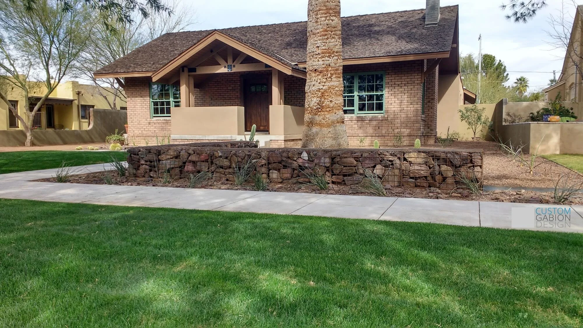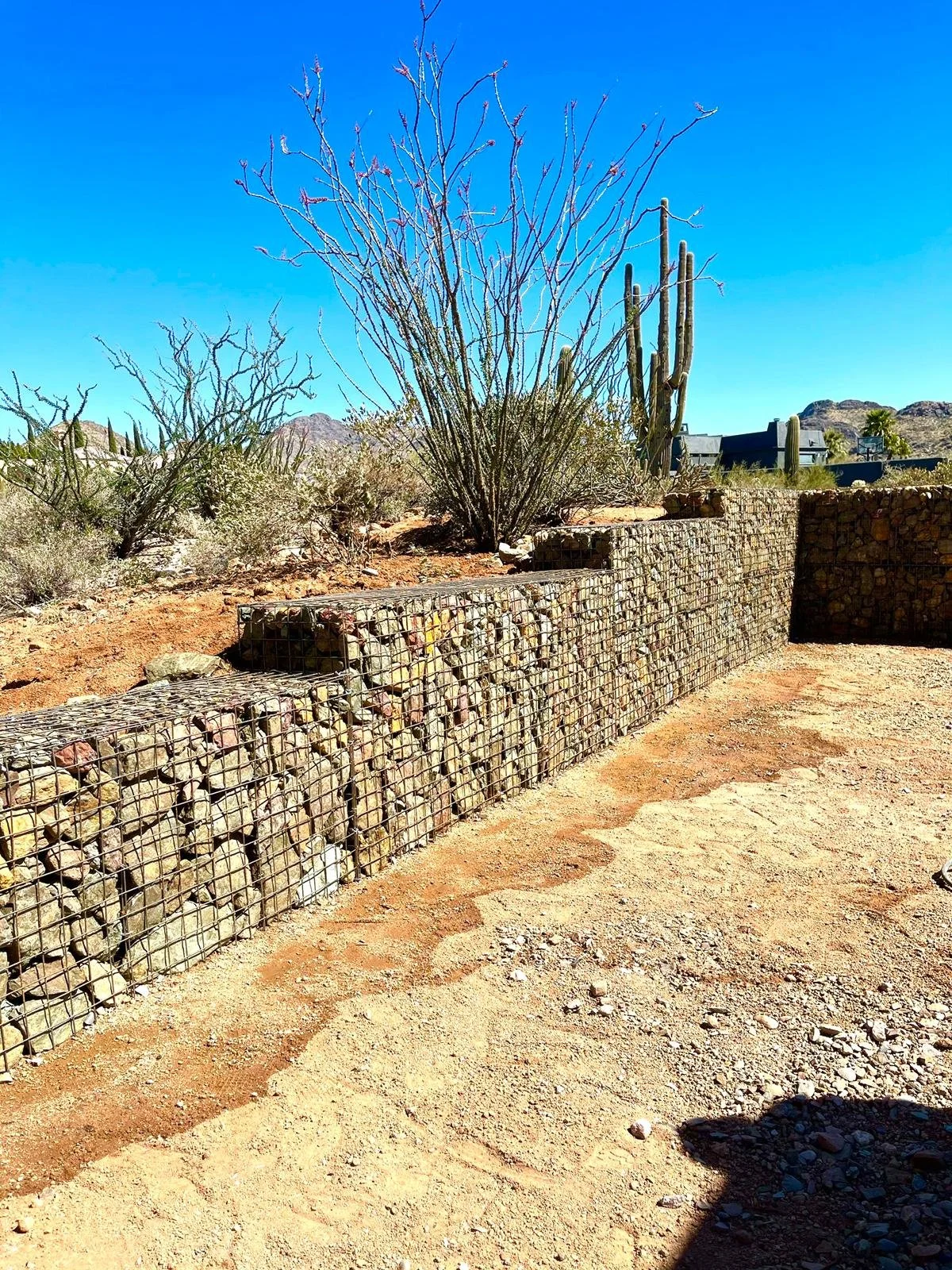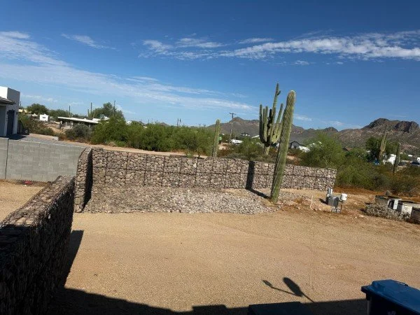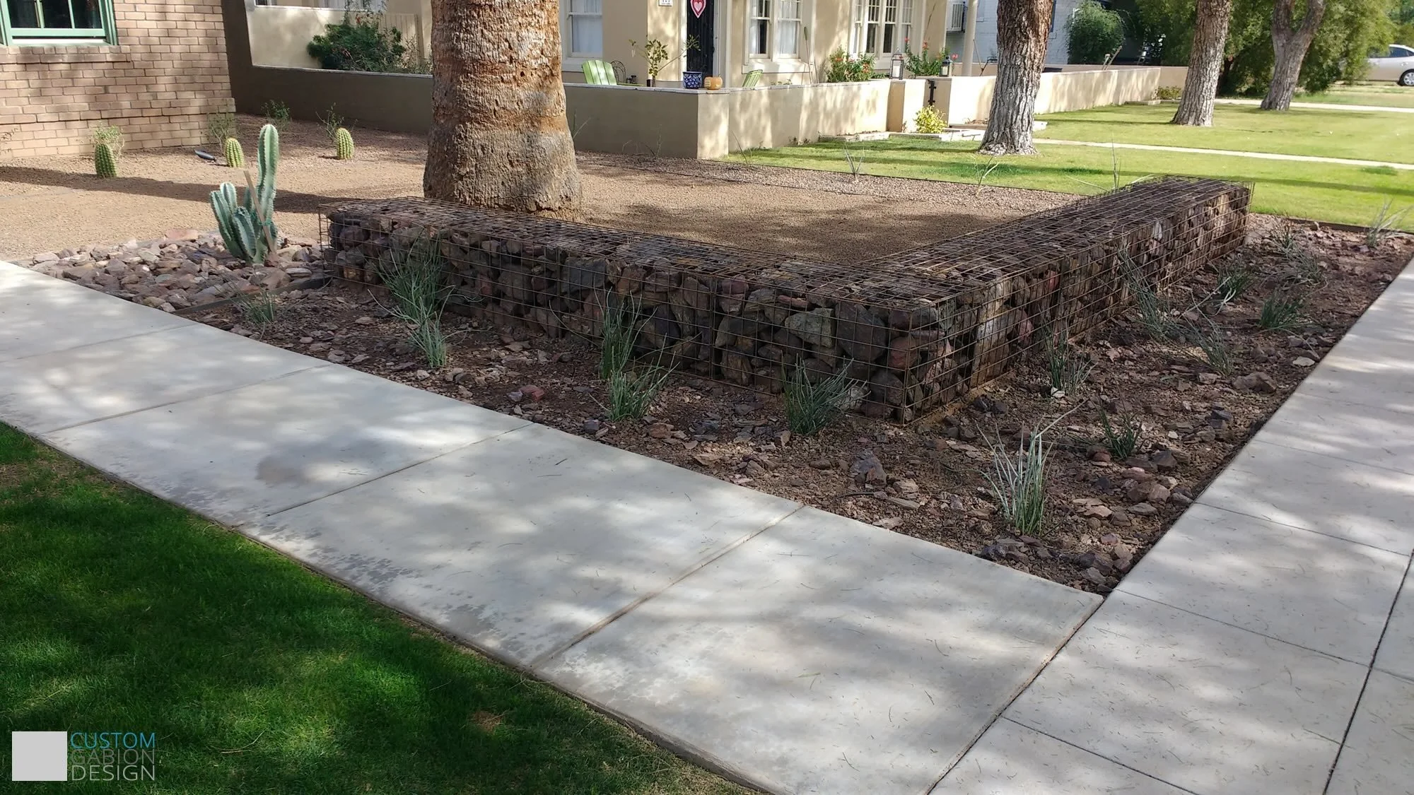 Beautiful and unique.Using gabions in a landscape gives you lots of shape, stype and color options. They are also super functional and maintenance free.